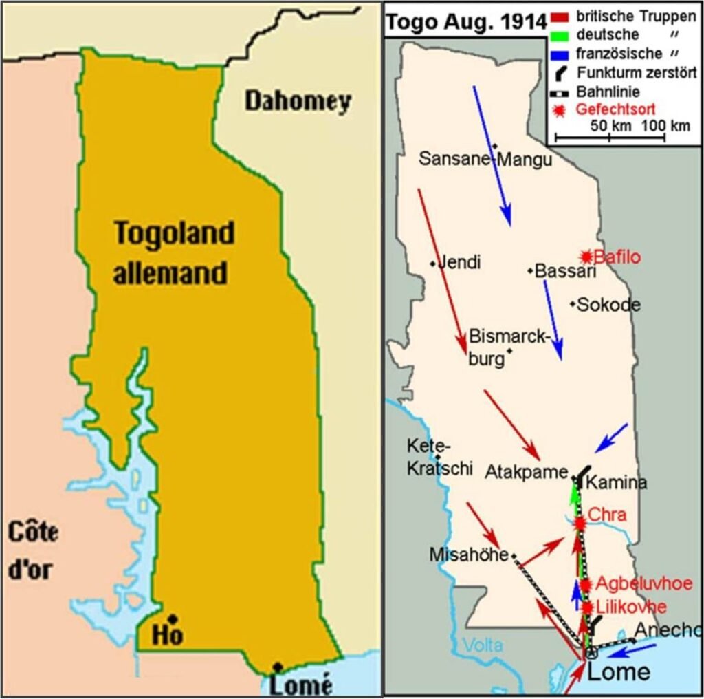 Le partage du Togo Allemand était une conséquence de la première guerre mondiale. Le Pays fut partagé en deux territoires : le Togo occidental administré par la Grande-Bretagne et le Togo oriental placé sous mandat français. La partie orientale d’une superficie de 56 785 km2, constitue l’actuelle République Togolaise.